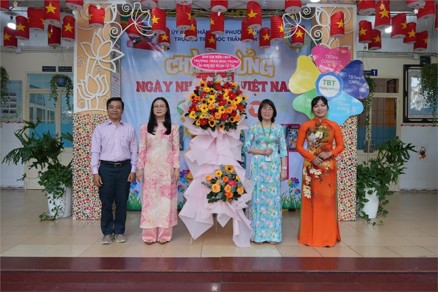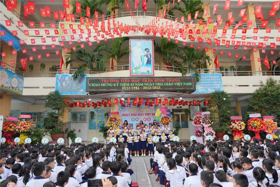 🌷 Sáng ngày 20/11/2025, Trường Tiểu học Trần Bình Trọng đã long trọng tổ chức Lễ kỷ niệm 43 năm Ngày Nhà giáo Việt Nam – dịp để toàn thể nhà trường ôn lại truyền thống tôn sư trọng đạo và bày tỏ lòng tri ân sâu sắc đến những người thầy, người cô đã âm thầm cống hiến cho sự nghiệp “trồng người”. Năm nay, cùng với Ngày hội triển lãm “50 năm đổi mới Giáo dục: Dấu ấn thời đại - Khát vọng tương lai” do Sở Giáo dục và Đào tạo TP. Hồ Chí Minh tổ chức, buổi lễ mang ý nghĩa đặc biệt hơn bao giờ hết: tôn vinh truyền thống giáo dục nhân văn, khẳng định những đổi mới đầy tự hào và tiếp thêm quyết tâm cho tập thể nhà trường trong hành trình viết tiếp những trang sử vàng của giáo dục Thành phố.